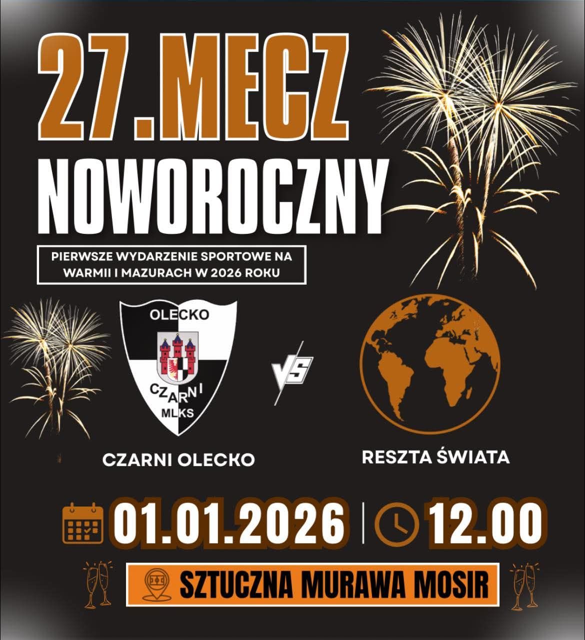 27. Mecz Noworoczny tradycyjnie otworzy sportowy rok w Olecku. W czwartek, 1 stycznia 2026 roku o godzinie 12.00, na sztucznej murawie Miejskiego Ośrodka Sportu i Rekreacji w Olecku odbędzie się wyjątkowe piłkarskie spotkanie, które od lat stanowi stały punkt noworocznego kalendarza sportowego regionu.